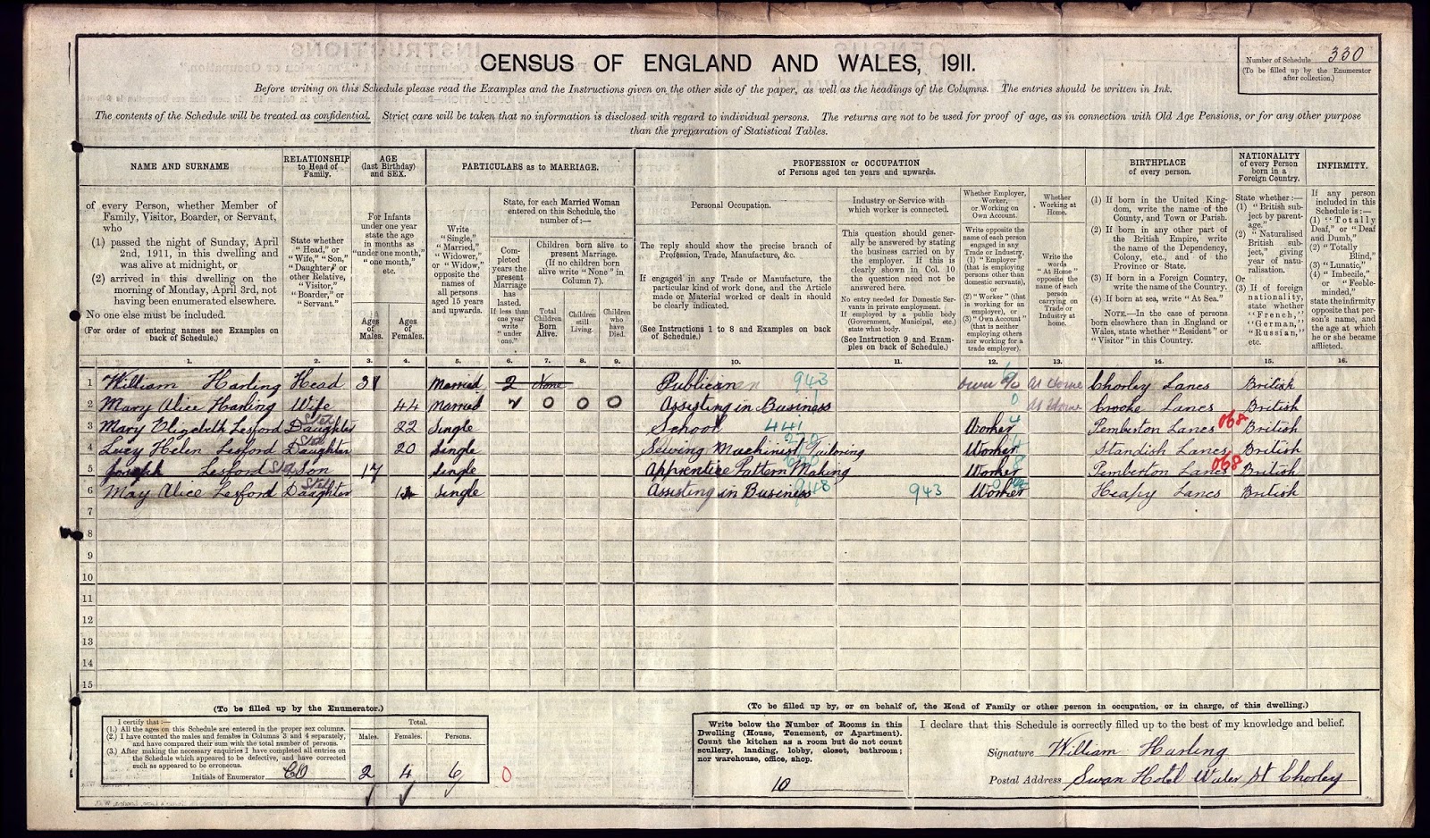 Mary Alice Lesford (41) Widow Hotel Keeper Swan Hotel Chorley