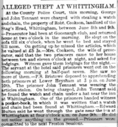 At the time of the 1881 census John Harrison's son George was living at home along with a servant Alice Cook, who originated from Penwortham. In 1883 local marriage records confirm that Alice and George married in Blackburn and took over from father John running the Stag's Head but later the same year George tragically died. Running the Inn single-handedly would have proved difficult after losing her husband and it comes as no surprise to note that the following year she remarried a local farmer, Robert Cookson with whom she ran the Inn whilst bringing up a young family for the next 20 years or so.